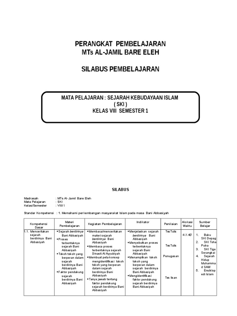 Silabus Ski Mts Sesuai Kma 183 / Silabus Ski Sejarah Kebudayaan Islam Kelas Viii Mts Kurikulum 2013 Revisi 2017 Pendidikan Agama Islam : Check spelling or type a new query.